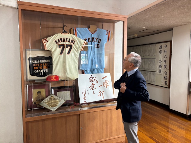 本校の卒業生は、有名人も多く居られるのですが、私の思い出としては在学中に「打撃の神様」と呼ばれた川上哲治さんが、母校である熊工に講演に来られて、聴講した記憶が鮮明に残っていますね。当時の王選手や長嶋選手の話で「彼らの何が凄いのか、わかりますか?」と話され「彼らは、他の選手が諦めてしまう所を諦めない所である」と仰った記憶がありますね。学生の私達に「何事も諦めない事!」と言うエールだったのではと思います。※巨人V9時代のキャンプの帰りだったような?